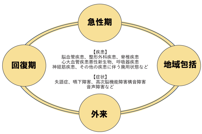 言葉によるコミュニケーションや、食事を食べることに問題がある方に、専門的な評価・訓練を提供し、自分らしい生活を構築していただけるように支援しています。