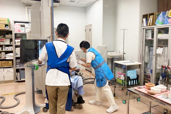 たとえば、下の写真は医師と嚥下造影検査を行っている様子です。